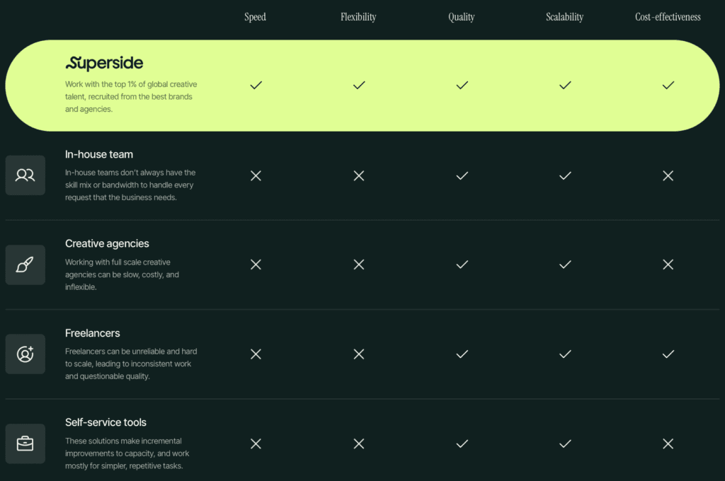 Superside is known for its on-demand design model, which is especially valuable for fast-moving SaaS companies. Their subscription-based service gives businesses access to a full creative team without the overhead of hiring in-house. Superside excels in delivering scalable design systems that ensure consistency across digital products, ads, and websites.